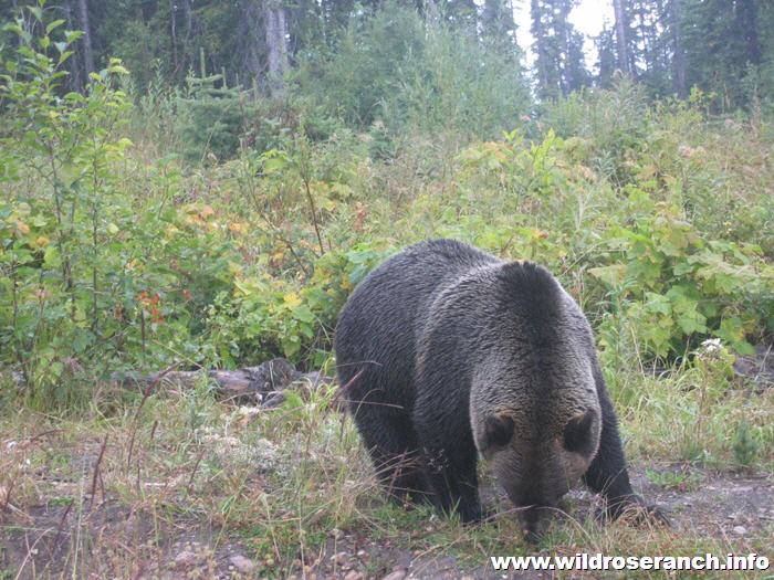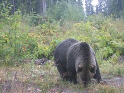 Es regnet, wir drehen uns noch mal um im Bett und machen auf gemütlich. Nach dem Morgenessen, kabeln wir uns ab und fahren zur „Kicking Horse Gondola“. Inzwischen hat es aufgehört zu regnen und wir fahren frohgemut mit dem Sessellift hinauf zum „Bear Refuge“. Oben angekommen sehen wir nichts ausser Gehege und Wald. Kurze Zeit später kommt ein brauner Pelz zum Vorschein und die Tourführerin fordert uns auf doch näher zu gehen. Eine knappe Stunde lang können wir nun „Boo“ (Grizzli, 3 ½ Jahr, 3oo kg) beobachten. Zuerst nimmt er ein spielerisches Vollbad um dann nachher, immer in unserer Nähe, seine ganze stolze Grösse zu zeigen! Noch stunden lange könnten wir diesem schönen Geschöpf zu sehen, entschliessen uns aber, auch wegen stärker werdendem Regen, wieder ins Tal zu fahren. Schnell ziehen wir trockene Kleider an und flüchten ins heimelige Talstation Restaurant. Nach dem Mittagessen, es regnet nicht mehr, nützen wir die Tageskarte und fahren mit dem Gondeli zur Bergstation. Kurz vor der Endstation sehen wir die ersten Schneeflocken fliegen. Es ist kalt!! Zielstrebig steuern wir das Gipfelrestaurant an und geniessen an der eleganten Hausbar ein Kaffee mit Schuss. Da bei diesem tristen Wetter die Aussicht zu wünschen übrig lässt, gondeln wir wieder ins Tal. Wir folgen dem Schild Trail Riding und entdecken tatsächlich einige Pferde. In „Golden“ kaufen wir ein und bringen dann die Sachen heim auf den Campground, auf dem wir eine zweite Nacht bleiben. |