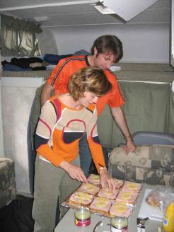 Heute schlafen wir aus und schlemmen dann Waffeln mit Ahornsirup, bis bald am Mittag. Da uns die Sonne heute anlacht sitzen wir am See zum essen. Danach schauen wir bei Nachbars deren Ferien Fotos an, tolle Bilder!! Jetzt ist es Zeit zum sünnele, aber es geht ein kühler Wind. Darum zügeln wir den Tisch vom See zum Camper, hier ist es schön warm. Bei Knabbergebäck und Gummibärli beschliessen wir über Karten gebeugt, dass es uns zu kühl ist hier. Wir fahren Morgen schon, vorerst zusammen, nach „Osoyoos“ um dort den Sommer zu finden. Bald ist der Nachmittag um und es ist Zeit zum Anfeuern. Dies besorgen wiederum die Herren, während die Damen in der Küche verschwinden. Kurz vor dem Essen rechnen wir den Campplatz ab, was zum Glück trotz früherer Abreise kein Problem ist. So jetzt wird geschlemmt und nach einigen, auch spontanen, Gängen sitzen wir satt ums Feuer und geniessen den Rest des Abends. |