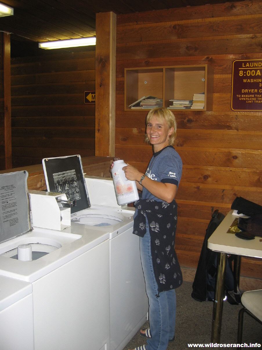 Oberhalb „Golden“ gibt es ein Wolf Center, das besuchen wir heute Morgen. Wieder einmal fahren wir ans Ende der Welt und finden Mitten im Wald ein kleines Haus, hinter dem es ein grosses Gehege hat. Darin leben einige Wölfe. Allerdings sind zuerst nur zwei sichtbar. Wunderschön! Etwas später gesellt sich in gesunder Distanz ein dritter hinzu. Alles in allem sind wir etwas enttäuscht, wir haben mehr erwartet. So fahren wir weiter weil wir von einer „Goldenwood Lodge“ gelesen haben. Da könne man auch Trailreiten. Im Office werden wir überraschenderweise auf Schweizerdeutsch begrüsst, was das Ganze sehr sympathisch macht. Eine Weile später geht’s los zu Pferd durch Wälder, Bäche, Flussbett usw. Nach zwei Stunden sind wir wieder zurück, es war toll! Nach etwas schwatzen fahren wir weiter. Nach dem „Glacier Nat. Park“ in „Canyon Hot Springs“ machen wir Halt für die Nacht. Natürlich nutzen wir den Pool mit den heissen Quellen für ein wohltuendes Bad. Danach entdecken wir die Wäscherei des Platzes und lassen zwei Maschinen voll Wäsche durch laufen. Unser Camper sieht aus wie ein Wäschehaus. Spät essen wir Znacht und fallen müde ins Bett. |