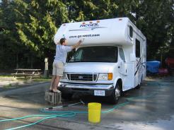 Um 8.45 Uhr werden wir von „Go West“ abgeholt. Die Zeit haben wir uns am Vortag telefonisch bestätigen lassen. Etwas nervös wegen der Camperübernahme, sind wir ganz überrascht als uns Tobias in waschechtem „Berndütsch“ begrüsst. So einfach haben wir uns das nicht vorgestellt. Nach gut einer Stunde sind wir instruiert und machen uns mit guten Ratschlägen von Tobias auf den Weg. Als erstes ist einkaufen angesagt. Wir scheitern schon beim Versuch einen Einkaufswagen zu bekommen, das System ist etwas anders als bei uns. Mit zwei Körben bewaffnet stellen wir uns den XXL Packungen sämtlicher Lebensmittel und amüsieren uns köstlich ab unseren gefüllten Körben. Kühlschrank voll, trauen wir uns mit Karten umgeben auf den Highway 99 Richtung Fähre in Tsawwassen. Mit Bravour und stockendem Englisch kommen wir nach 1 ½ Stunden in Swartz Bay, Vancouver Island an. Wir peilen den ersten Campingplatz an und übernachten im „Mc Donald Park „ zum ersten mal in unserem Haus auf Rädern. Kurz nach unserer Ankunft erscheint auch schon der Ranger, der uns nach Länge des Aufenthalts und Anzahl Personen fragt. Er kassiert gleich den Betrag von $ 14.- ein und weist uns darauf hin kein Feuer zu machen. Die Waldbrandgefahr ist sehr hoch. Müde schlummern wir ein… |