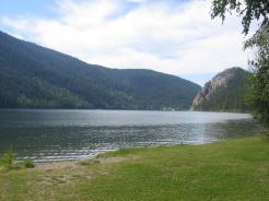 Am heutigen Tag ist „Cache Creek“ unser Ziel. Durch sehr trockenes Gebiet fahren wir über „Lillooet“ dorthin. Wir besuchen die bekannte „Hat Creek Ranch“, eine alte Postkutschen – und Versorgungsstation. Weiter geht es dann auf der berühmten „Cariboo Road“ über „Clinton“ zum nächsten Campingplatz. Zuerst müssen zum ersten Mal die Abwassertanks des Campers geleert und Frischwasser nachgefüllt werden, dass machen wir bei der nahen Sani Station. Danach finden wir am wunderschönen, abgelegenen „Green Lake“ noch Platz, mitten im Birkenwald. Wir geniessen ein kühles Bad im See und lassen uns von der Sonne trocknen. Beim späteren kochen werden wir von unserem empfindlichen Rauchmelder überrascht…;o) |