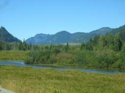 Das heutige Morgenessen lassen wir uns servieren. Schinken mit Ei, Toast und kleinen Rösti’s... mmmmh… wir schlendern zurück zum Camper um bald weiterzufahren. In „Hope“ spazieren wir durchs Dorf und kaufen ein. Es ist kühl und ein starker Wind weht. Einige Szenen vom Rambo Film Teil 1 (First Blood) wurden hier gedreht. Ansonsten ein verschlafenes Dorf wie so viele andere auch. Es hält uns nicht mehr hier und wir fahren Richtung „Menning-Park“, der das beliebte Ferienausflugsziel der Vancouveraner sein soll. Wir erhoffen uns noch einige sonnige Tage in dieser Region. Auf dem zweiten Anlauf finden wir einen Platz im Campground „Mule Deer“ direkt am Bach. Hier scheint die Sonne, aber es geht ein kühles Lüftchen. |