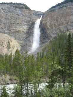 Heute wäre Reiten angesagt, bei diesem grauen Himmel macht uns das aber nicht an. Unsere Fahrt geht zurück nach „Lake Louise“. Unterwegs fahren wir auf eine Autokolonne zu, irgendetwas muss es da zu sehen geben. Drei kleine Bären spazieren durchs Unterholz der Strasse entlang. Nach ein paar kurzen Blicken fahren wir weiter, mit sehr wenig Verständnis für diejenigen die aussteigen müssen. Zum Glück fahren soeben die Parkranger auf den Platz. In „Lake Louise“ decken wir uns mit Infomaterial ein und weiter geht’s Richtung „Kicking Horse Pass“. Ein Stopp um die „Spiral Tunnels“ zu bestaunen. Nun sind wir im „Yoho National Park“. Im „Yoho Valley“ schauen wir uns die 384 m hohen „Takakaw Falls“ an. Weiter über „Field“ zum „Emerald Lake“. Die schöne Farbe und die Ruhe des Sees inspirieren uns zum Kanu fahren. Fast eine Stunde paddeln wir umher. Unser Tagesziel heute ist „Golden“, wir holen und erneut und suchen den angegebenen Campingplatz. Wir finden ihn dann auch, abgelegen, gemütlich, am Arsch der Welt. Wir sind müde und nach dem Wäsche waschen hauen wir uns zwei Stunden aufs Ohr. Wir machen uns dann noch Znacht und gehen bald schlafen… |