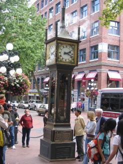 Heute ist unser Hochzeitstag. Wir lassen uns Zeit am Morgen, packen etwas vor und waschen den Camper. Gegen Mittag laufen wir zur Bushaltestelle und fahren mit Bus 251 nach Vancouver Down Town. Wir sehen „Gas Town“ mit seinen vielen Lädeli und Cafés. Auch die „Steamclock“ hören wir pfeiffen. Danach laufen wir durch die „Granville Street“ über die „Granville Bridge“, tolle Aussicht, nach „Granville Island“. Da bummeln wir durch die alten Fabriken die zu Shops, Restaurants und Galerien umfunktioniert wurden. Für den Rückweg nehmen wir ein Seetaxi, das uns am „Sunset Beach“ auslädt. Von hier spazieren wir zur „Robson Street“ die wir noch mal sehen möchten. Wir sehen den wunderschönen Sonnenuntergang, leider nicht direkt am Meer. Da wir noch Fotos von der Stadtkulisse möchten, gehen wir noch mal zum „Pan Pacific“ Hotel aufs Vorderdeck. Von hier aus machen wir uns auf den Heimweg. Wieder mit dem Bus. „Zu Hause“ packen wir etwas weiter und essen Znacht. Wir gehen das letzte Mal im Camper schlafen. |