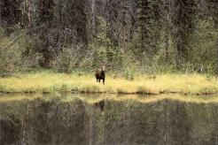 Erwachen bei etwas wärmeren Temperaturen, aber immer noch ungemütlich. Kaum losgefahren sehen wir „Elks“ (Wapithi Hirsche) weiden. Ein schöner Anblick. Langsam tuckern wir weiter nach Banff. Unterdessen sehen wir einen „Elk“ der sich sein mächtiges Geweih am Gehölz putzt. In Banff ist es nicht einfach einen Parkplatz zu finden, auf dem wir mit Camper eine Weile bleiben können. Endlich einen gefunden geht die Shoppingtour los… Ganz gespannt lassen wir unsere ersten Fotos entwickeln. Nach gemütlichem Bummeln holen wir die Fotos ab und fahren auf den nächsten Campingplatz. Wir werden darauf aufmerksam gemacht, dass sie die beiden letzten Tage Bärenbesuch im Camp hatten. Das freut uns doch… |