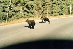 Erwachen bei etwas wärmeren Temperaturen, aber immer noch ungemütlich. Kaum losgefahren sehen wir „Elks“ (Wapithi Hirsche) weiden. Ein schöner Anblick. Langsam tuckern wir weiter nach Banff. Unterdessen sehen wir einen „Elk“ der sich sein mächtiges Geweih am Gehölz putzt. In Banff ist es nicht einfach einen Parkplatz zu finden, auf dem wir mit Camper eine Weile bleiben können. Endlich einen gefunden geht die Shoppingtour los… Ganz gespannt lassen wir unsere ersten Fotos entwickeln. Nach gemütlichem Bummeln holen wir die Fotos ab und fahren auf den nächsten Campingplatz. Wir werden darauf aufmerksam gemacht, dass sie die beiden letzten Tage Bärenbesuch im Camp hatten. Das freut uns doch… |