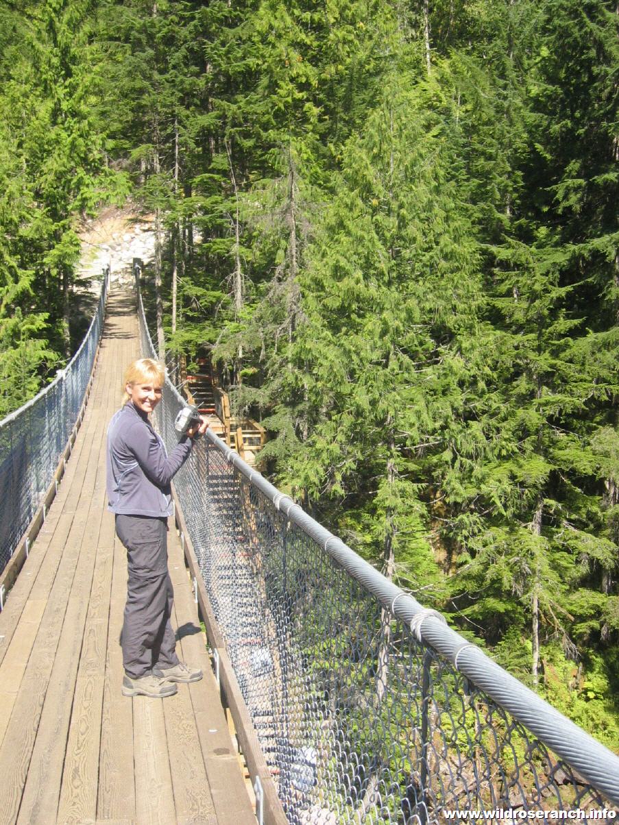 Nach dem uns wiederholt der Zug in der Nacht geweckt hat, ist es nun der Wecker. Wir möchten heute Richtung „Kamloops“, weil da am Wochenende ein Rodeo stattfindet. Anfang „Revelstoke Nat. Park“ machen wir Halt um den dortigen Regenwald zu bestaunen. Auf einem „Boardwalk“ laufen wir durch den Wald um spezielle XXL Vegetation zu sehen. Riesige, alte „Giant Cedars“ Bäume und gewaltig grossblättrige Pflanzen wachsen da. Bald geht’s weiter und wir kommen zum „Crazy Creek“ mit seiner „Suspension Bridge“. Ein schöner Wasserfall über dessen Canyon eine Hängebrücke schwebt. Wir verweilen ein wenig bevor wir weiterfahren. Jetzt geht die Sucherei los, die Camps in dieser Umgebung sind entweder nicht heimelig oder nicht auffindbar. So fahren wir und fahren und fahren. Die Landschaft ändert sich wieder in braune trockene Region. So kommen wir nach „Kamloops“ wo wir etwas ausserhalb (19km) wieder eines unserer geliebten Wald-Motzi Camp finden. |