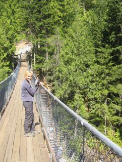 Gut geschlafen, Zmorge im Bauch, schauen wir ob der Big Boss des Platzes schon da ist. Nach dem Abrechnen fahren wir los Richtung Vancouver und mit kleinen Umwegen finden wir zurück zum Hwy. 7. Bald erreichen wir den Hwy.1 Richtung Westen. Da wir sowieso noch auf den „Grouse Mountain „ möchten, entscheiden wir uns für den „Capilano R.V. Park“. Wir buchen für die letzten zwei Nächte Vollpension. Platz reserviert machen wir uns mit dem Camper auf den Weg zum „Grouse Mountain“. Erneut mit einer Schweizer Seilbahn gondeln wir nach oben. Ausser der tollen Aussicht sehen wir Wölfe, Falken – und Eulenshows. Da das Ganze nicht sehr weitläufig ist und kein Bär in Sicht, machen wir uns auf den Rückweg nach unten. Als nächstes möchten wir noch die „Capilano Suspension Bridge“ sehen. Nach durchkämmen des „Gift Shops“ laufen wir über die 140 m lange Hängebrücke. Fast 80 m tief ist die Schlucht des „Capilano Rivers“. Im Regenwald auf deren anderen Seite laufen wir auf Bretterstegen durch den Wald. Auch aus Affenperspektive können wir auf Hängebrücken durch die Bäume laufen. Nach diesem schwankenden Abenteuer fahren wir zum Campingplatz. Wir planen nun die letzten Tage, traurig wird uns bewusst, dass unsere Traumreise zu Ende geht. Das Einzige was uns nach Hause zieht sind unsere Tiere. Heute gibt es Hörnli und Ghackets, unsere Vorräte schwinden. |