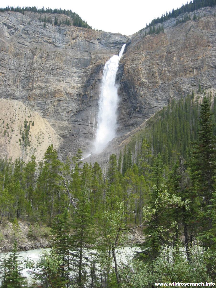 Heute wäre Reiten angesagt, bei diesem grauen Himmel macht uns das aber nicht an. Unsere Fahrt geht zurück nach „Lake Louise“. Unterwegs fahren wir auf eine Autokolonne zu, irgendetwas muss es da zu sehen geben. Drei kleine Bären spazieren durchs Unterholz der Strasse entlang. Nach ein paar kurzen Blicken fahren wir weiter, mit sehr wenig Verständnis für diejenigen die aussteigen müssen. Zum Glück fahren soeben die Parkranger auf den Platz. In „Lake Louise“ decken wir uns mit Infomaterial ein und weiter geht’s Richtung „Kicking Horse Pass“. Ein Stopp um die „Spiral Tunnels“ zu bestaunen. Nun sind wir im „Yoho National Park“. Im „Yoho Valley“ schauen wir uns die 384 m hohen „Takakaw Falls“ an. Weiter über „Field“ zum „Emerald Lake“. Die schöne Farbe und die Ruhe des Sees inspirieren uns zum Kanu fahren. Fast eine Stunde paddeln wir umher. Unser Tagesziel heute ist „Golden“, wir holen und erneut und suchen den angegebenen Campingplatz. Wir finden ihn dann auch, abgelegen, gemütlich, am Arsch der Welt. Wir sind müde und nach dem Wäsche waschen hauen wir uns zwei Stunden aufs Ohr. Wir machen uns dann noch Znacht und gehen bald schlafen… |