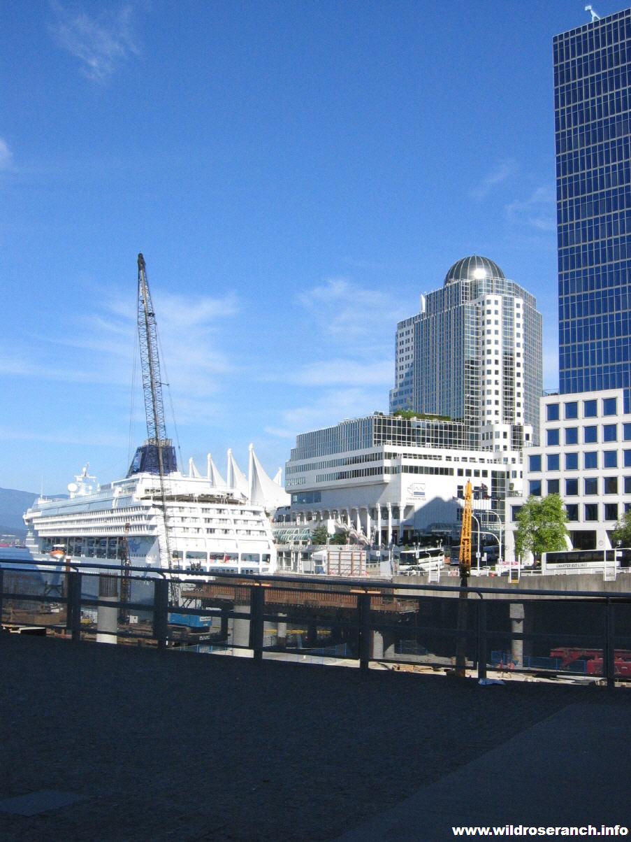 Nach 13 Stunden Flug und Zwischenlandung in Calgary, landen wir auf dem Vancouver Flughafen. Schnell ist ein Taxi gefunden, dass uns ins Pan Pacific Hotel bringt. Wir kommen aus dem staunen nicht mehr raus, dass Hotel ist riesig und das Zimmer dem entsprechend grosszügig. Die Fahrt mit dem Hotellift verschlägt uns den Atem, ein rasantes Tempo! Nach einem kurzen Ausflug in die Stadt und einem einfachen Abendessen, fallen wir schon um 20.00 Uhr müde ins Bett. Schliesslich sind wir schon seit 23 Stunden auf. |