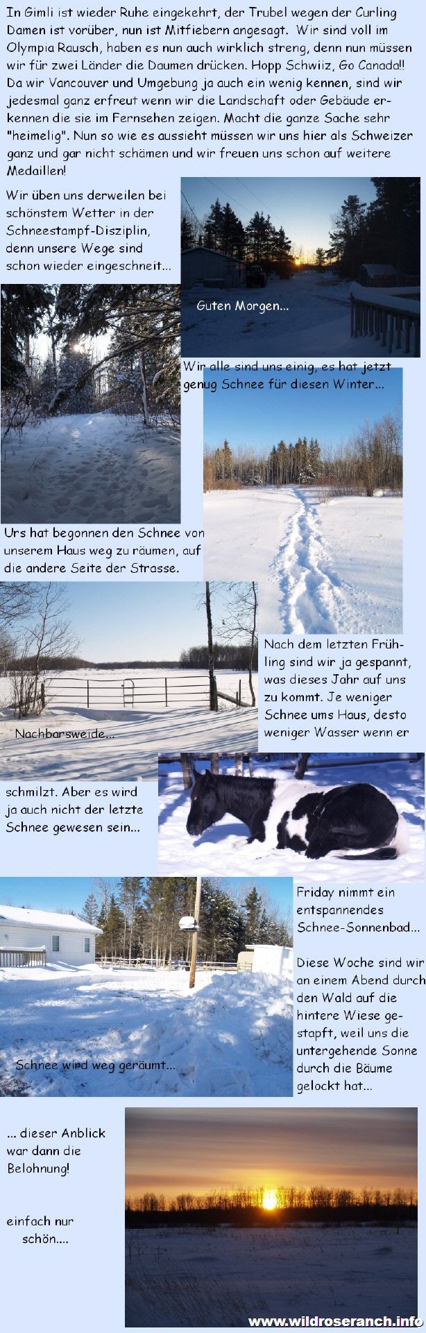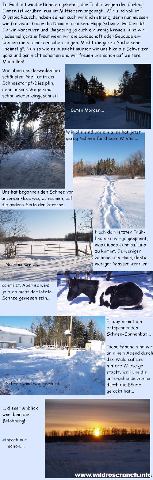 das heisst nämlich es verzieht sich nochmals für sechs Wochen in seiner Höhle und der Winter geht weiter. Ist das Wetter trüb und es sieht seinen eigenen Schatten nicht, soll laut Tradition das Wetter gemässigt sein und auch so bleiben, d.h. der Frühling kommt bald. Tja auch dieses Jahr werden wir es so nehmen wie es kommt...