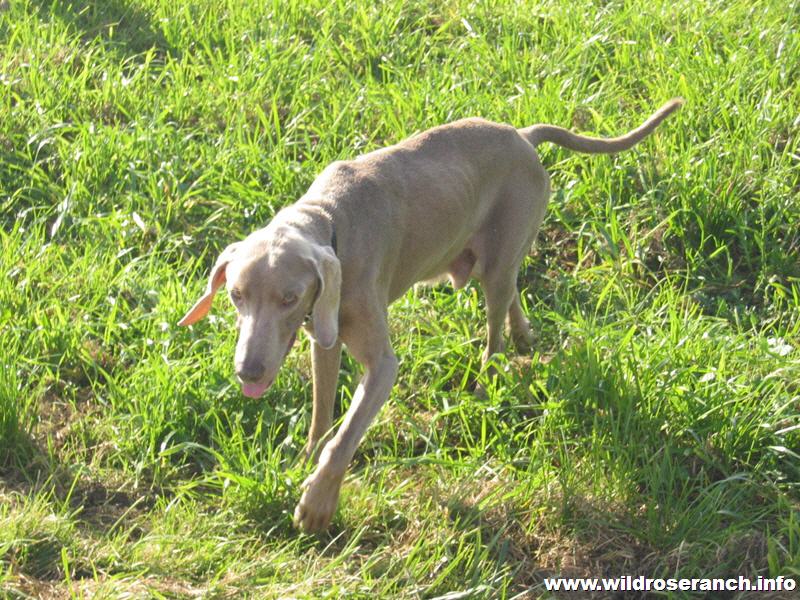 Da Alf aber ein ruhiges Wesen hatte, konnten wir ihn problemlos überallhin mitnehmen. Im Jahr 2004 hatten wir überraschend die Möglichkeit, eine 1 ½ -jährige Weimaraner-Hündin zu übernehmen. Für Alf, der mittlerweile gut zwölf Jahre alt war, eine Herausforderung. Vom ersten Tag an verstanden sich die Hunde prächtig. Unser Hundeopa genoss seine "Konkurrenz" und blühte nochmals richtig auf. Gemeinsame Schmusestunden mit dem ganzen Rudel konnten ewig dauern, wenn es nach den beiden Hunden ginge!