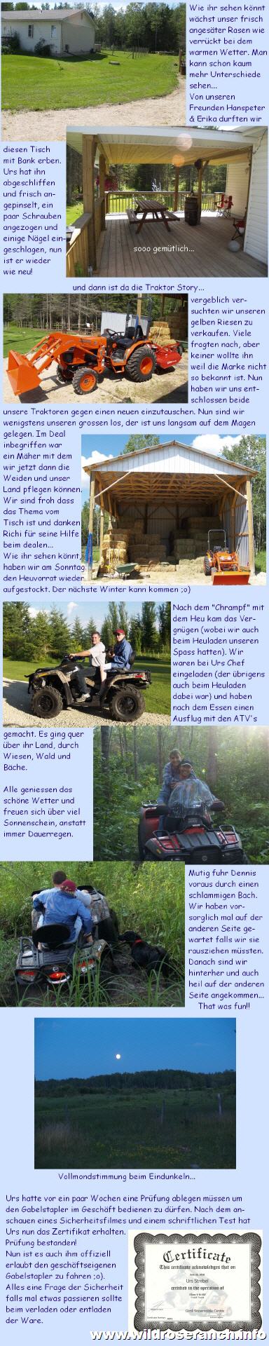 Letzte Woche hat Urs wieder einmal einen Bären gesehen, als er mit dem Auto auf dem Heimweg war. Obwohl wir ja wissen, dass die Tiere "da draussen" sind, sieht man sie nicht oft. So ist man um so überraschter wenn mal eins auftaucht. Vermutlich ist es der gleiche Bär den ich vor ein paar Wochen schon gesehen habe, als ich zur Arbeit fuhr. Am Freitag als Urs zu Pat & Richi rüberfuhr hat er sogar einen Wolf gesichtet gleich an der Strasse auf dem Land unseres Nachbarn. Wie immer in solchen Situationen ist natürlich der Fotoapparat zu Hause Diese Sichtungen ängstigen uns nicht, es macht uns einfach wachsamer wenn wir draussen unterwegs sind. Natürlich finden wir es immer wieder schön solche Tiere zu sehen, vorallem wenn's aus dem Auto ist |